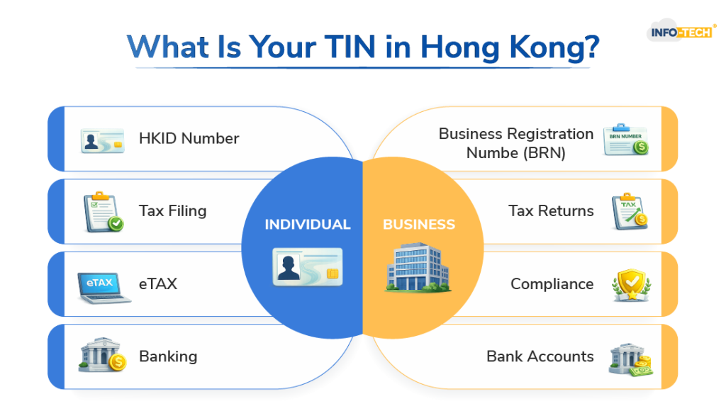 | TIN | Individuals & businesses | Tax identification | HKID or BRN |